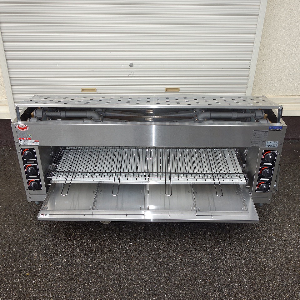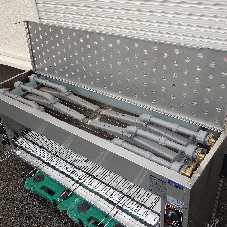年式:2015年9月製 ガス種:LPガス ガス消費量:18.8kW(1.35kg/h) ガス接続口:15A×2(非ゴム管口) 棚高さ調節:ハンドルレバー方式 定価:313,200円 導入当時に検収運転にて数回使用し、 以降殆ど使用していない状態でしたので、 コンディションはバツグンです。 新古品と言っても過言ではございません! オマケとして金串数十本お付けいたします。 外見・構造ともにシンプルで使いやすい バランス型の焼物器です! ◎使用頻度極少! ◎準新古品 ◎試用期間1年未満 当社のメンテナンス商品は食品が接触する 可能性の有る駆動部分に 食品機械専用グリースを使用しております。 また、原則として当社の商品(主に機械類)には 除湿剤を内包保管し発送いたしております。 前使用者:仕出し弁当店 (2015年10月まで使用されていました。) <見学・下見可能です> 整備清掃渡し【即納・即稼働可】 |