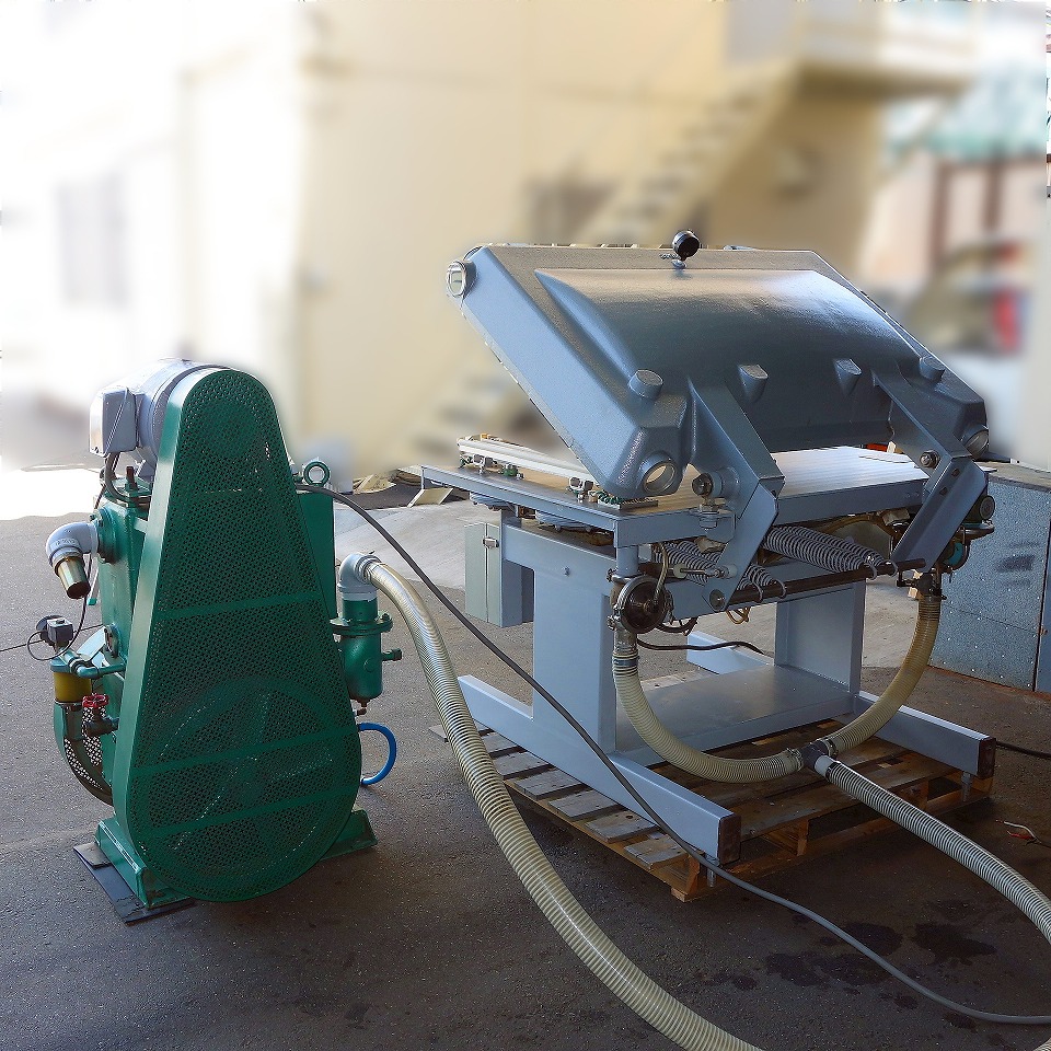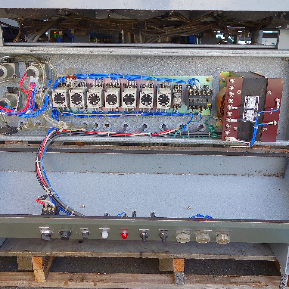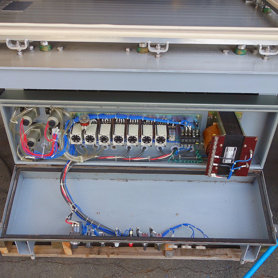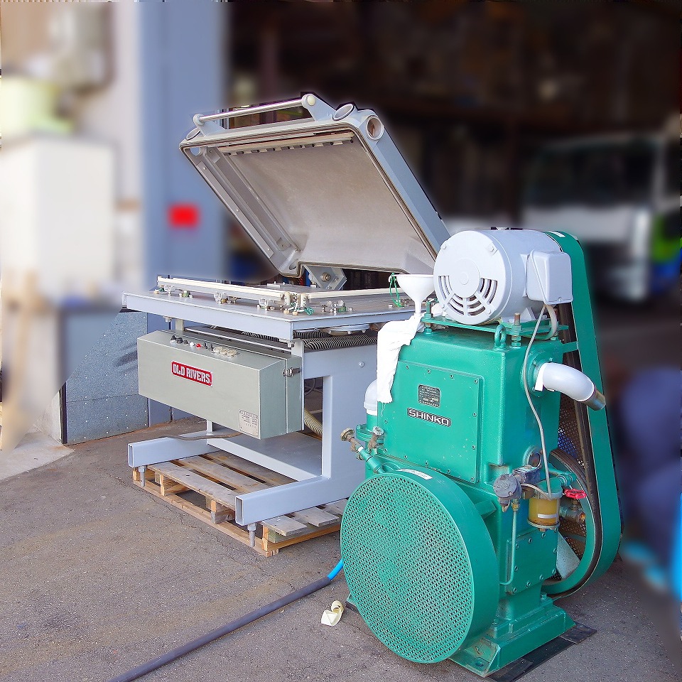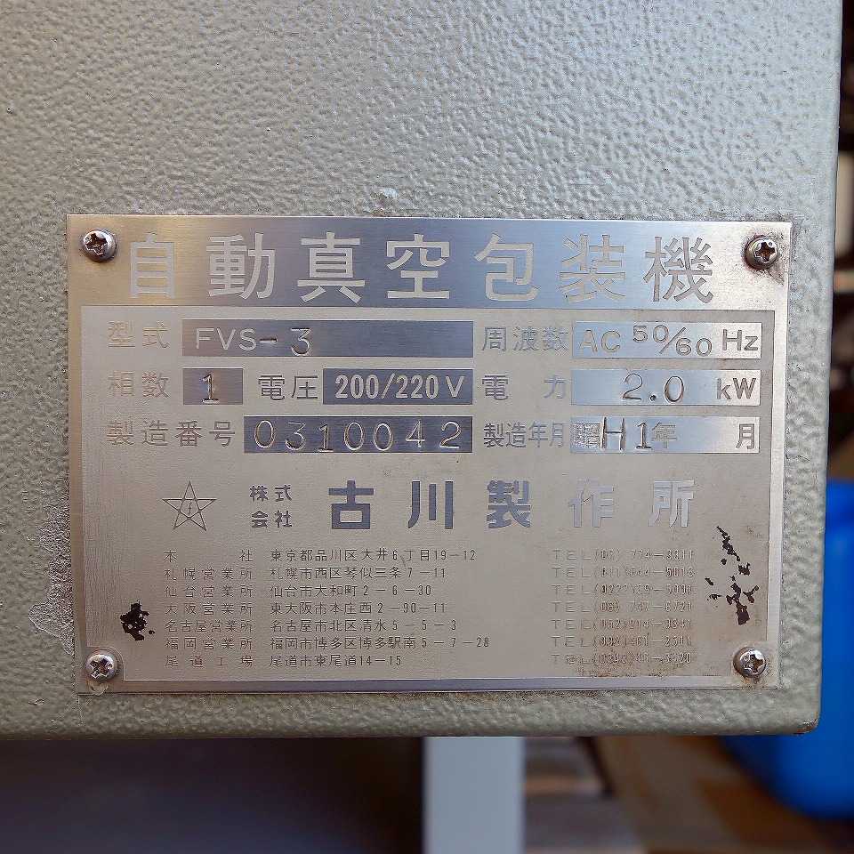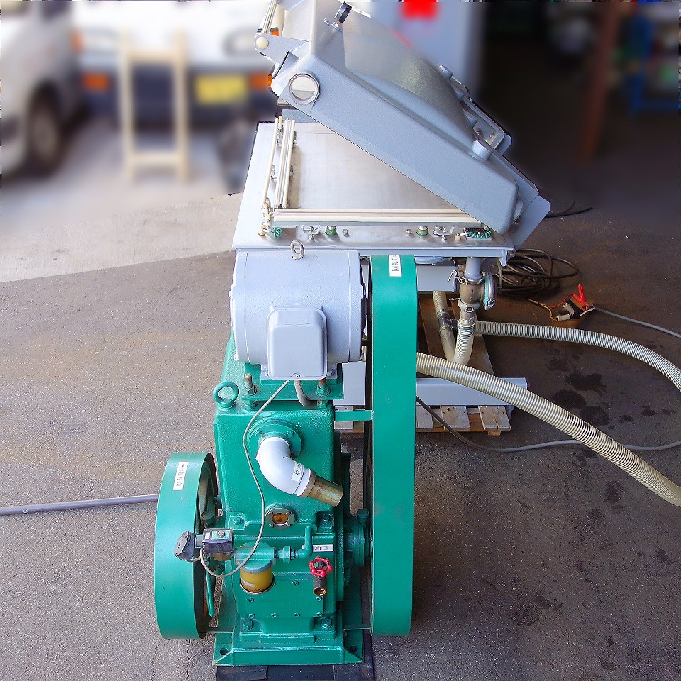 1989年製 電力:2.0kW シール幅:横900 縦650(mm) チャンバー内高さ:200(mm) シール方式:インパルス方式 真空ポンプ:回転式真空ポンプ SR-3700B 重量:110kg 電源:3相200V 水冷式 油量:11L 回転数:410rps 3mm半丸型のヒーター線を採用しており、 平型ヒーター線にくらべより高いシール強度が得られ、 更に大型チャンバーですので、容易に作業を行え、 長尺袋から中袋まで幅広く対応できます。 また、真空ポンプは付属のホースを2本ジョイントで繋げば 本体と6m離すことができるので ポンプの屋外設置も容易に行えます。 5.5Kwのハイパワーで、真空引きも早く 作業効率もUP間違いなし! ◎薬剤清掃済み ◎動作確認済み(エイジング2/H以上) ◎ビニール自動カット刃付き ◎フレーム錆止 再塗装済み ◎熱線(3mmシングル)(縦・横) 交換済み ◎シールテープ 全面交換済み ◎チャンバー内防振ゴム 新規交換済み ◎真空ポンプ内 フラッシング洗浄済み ◎真空ポンプ用マシンオイル11L 新規交換済み ※本体・真空ポンプ共に大型のため 2個口での発送となります。 当社のメンテナンス商品は食品が接触する 可能性の有る駆動部分に 食品機械専用グリースを使用しております。 また、原則として当社の商品(主に機械類)には 除湿剤を内包保管し発送いたしております。 <見学・下見可能です> 整備清掃渡し【即納・即稼働可】 |