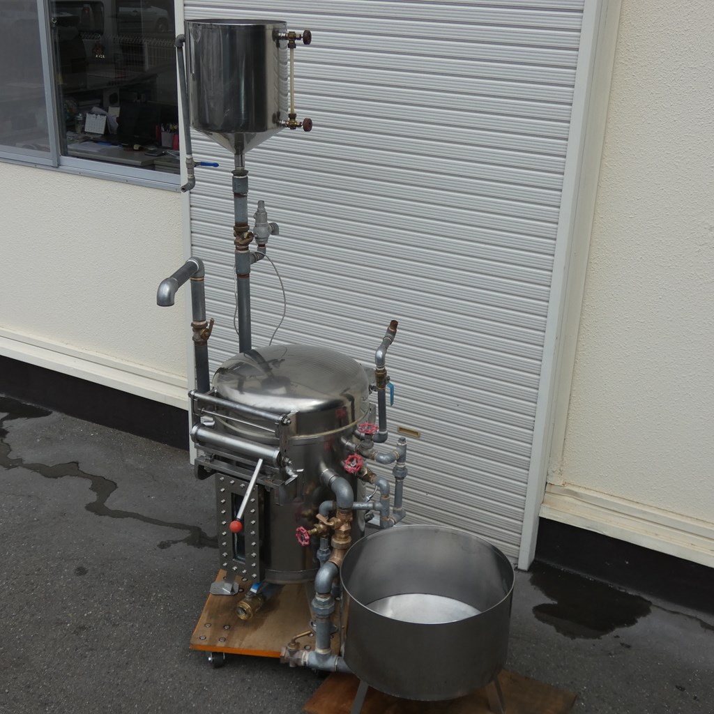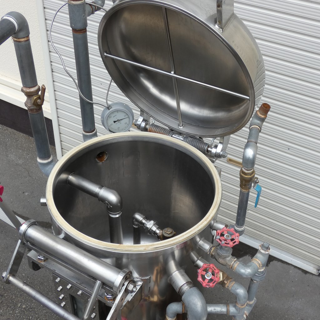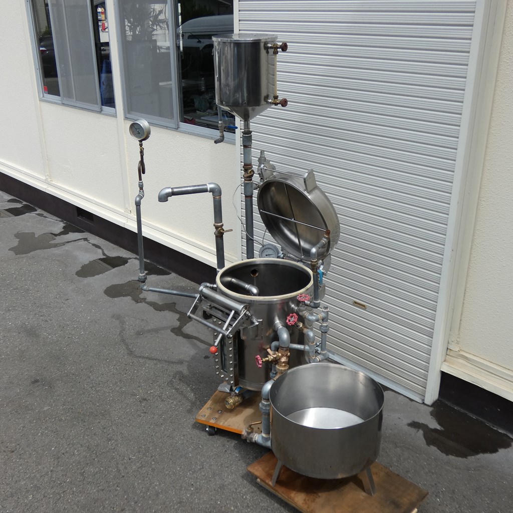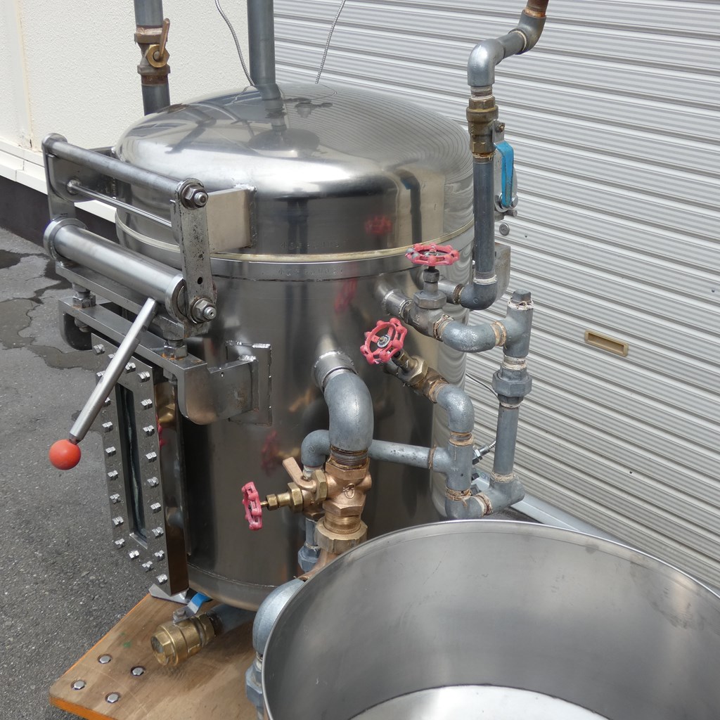 年式:2008年製 ワークサイズ(内部):550Φ(直径)xH550(mm) 内容量:130L メーカー等不明ですが、豆腐製造用の 蒸気圧釜(蒸気装置)となります。 豆腐製造なら下記の装置と合わせてご覧下さい! ◎薬剤清掃済み