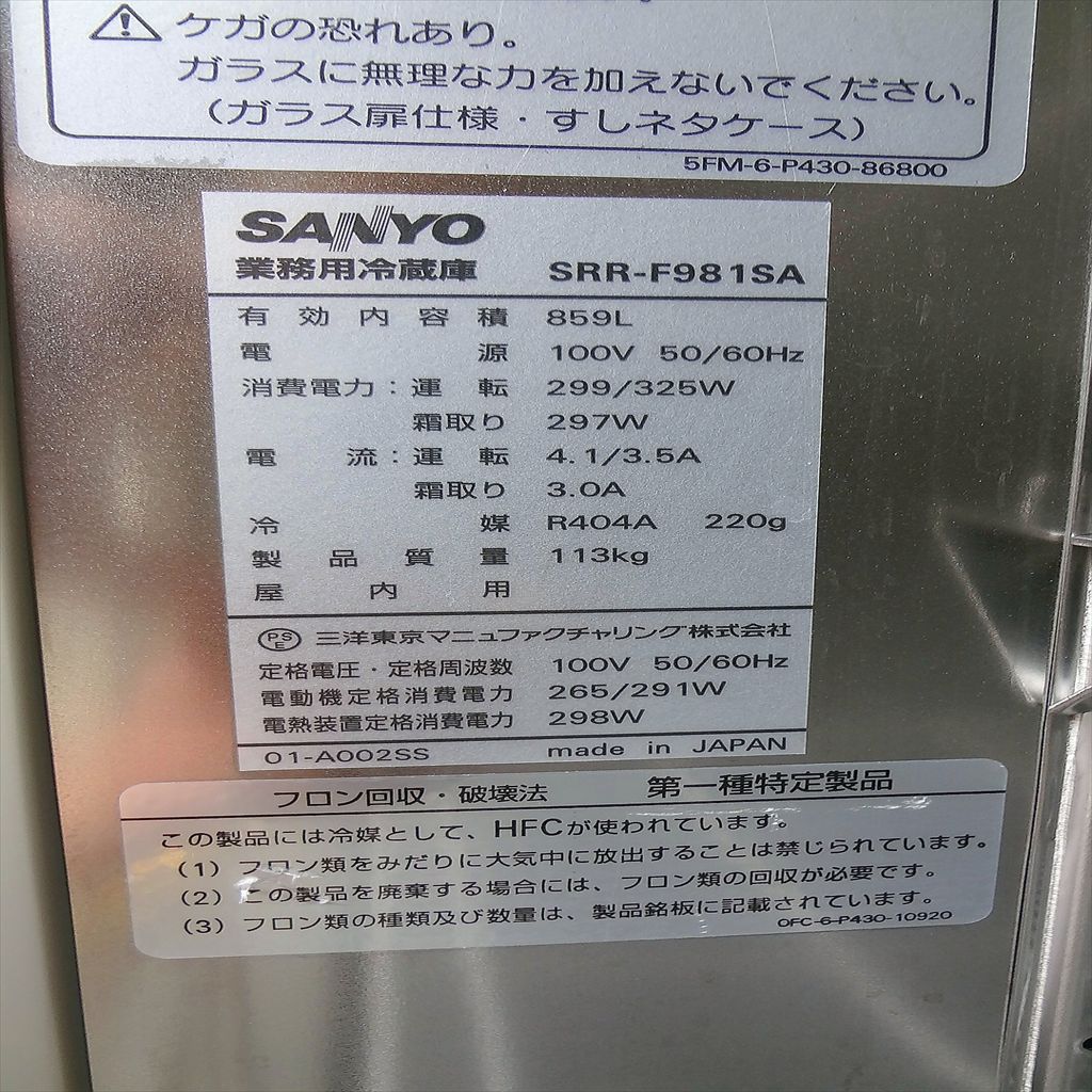 年式:2004年製 有効内容量:859L 冷媒:R404a 220g 定価:877,800円 ピラーレスなので内部が広く使えます! 大きな物の出し入れもカンタン! ◎動作確認済み(エイジング12/h) ◎0℃温度維持確認済み ◎庫内SUS仕様 ◎薬剤清掃済み 当社のメンテナンス商品は 食品が接触する可能性の有る駆動部分に 食品機械専用グリースを使用しております。 また、原則として当社の商品(主に機械類)には 脱臭除湿剤を内包保管し発送いたしております。 前使用者:大型寿司店 <見学・下見可能です> |