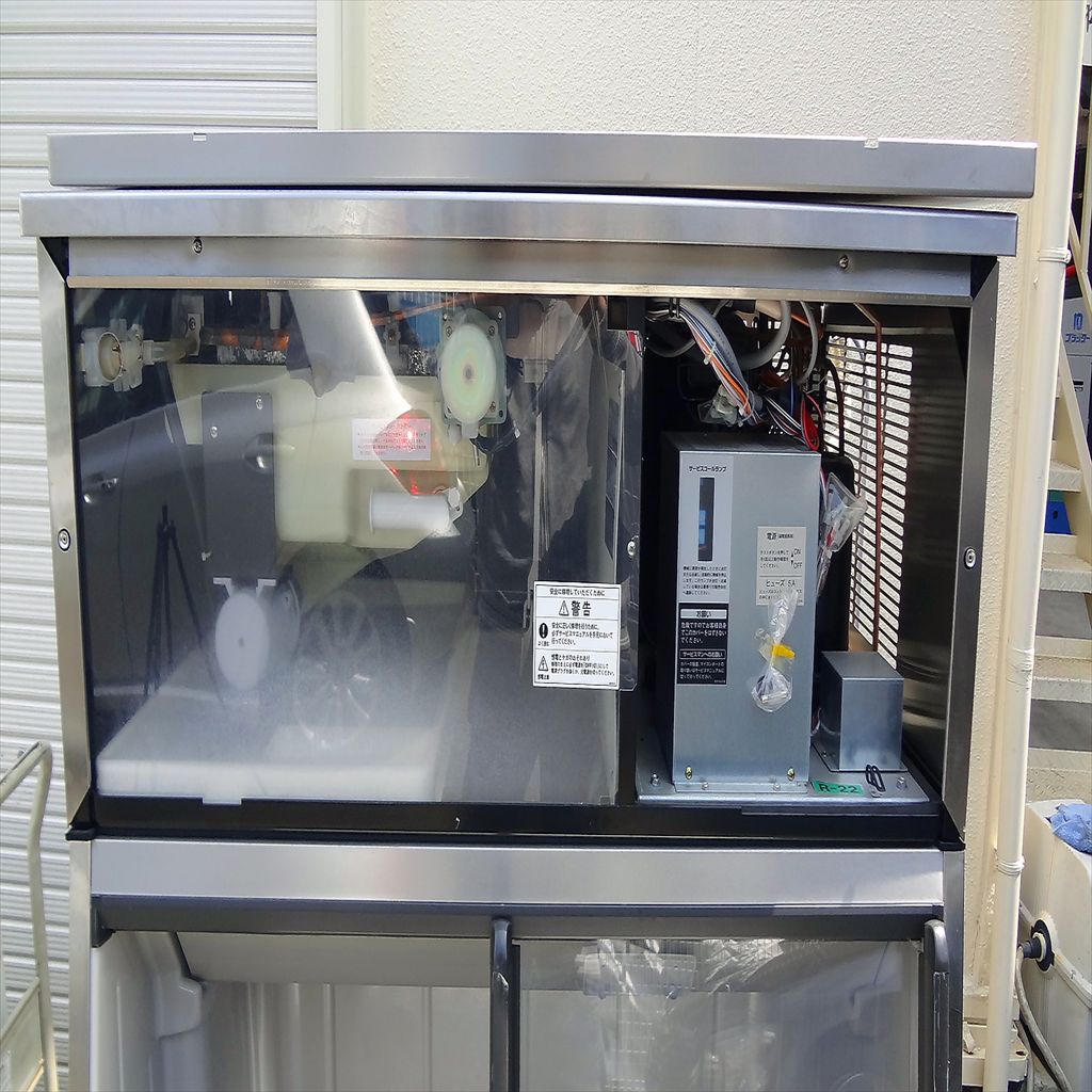 年式:2004年製 製氷能力:約210/230kg/日(室温20℃ 水温15℃ 50/60Hz) 製氷能力:約190/205kg/日(室温30℃ 水温25℃ 50/60Hz) 貯水量:自然落下時貯氷量 約220kg 貯水量:最大ストック量 約250kg 12時間で使用可能な氷 約210/230kg 消費電力:1040/1200W(力率68/80%) 消費水量:約0.34/0.37m3/日(室温20℃ 水温15℃ 50/60Hz) 消費水量:約0.30/0.32m3/日(室温30℃ 水温25℃ 50/60Hz) 凝縮器ユニット:URC-200B 定価:1,614,600円 スタックオンタイプの大型製氷機です! 使用頻度極少なので筐体はかなり綺麗です! そろそろ本機が活躍する季節ですので品薄になる前にどうぞ! ◎整備清掃済み ◎使用頻度極少 ※凝縮器ユニット 04年製ですが引き取る直前まで問題なく使用されていたと聞いております。 そのため、弊社での動作テストは行っておりません。 ※凝縮器ユニットの冷媒ガスにつきましては、お客様にて補充下さい。 当社のメンテナンス商品は食品が接触する 可能性の有る駆動部分に 食品機械専用グリースを使用しております。 また、原則として当社の商品(主に機械類)には 除湿剤を内包保管し発送いたしております。 前使用者:中規模スーパー (2013年11月まで使用されていました。) <見学・下見可能です> 整備清掃渡し【即納・即稼働可】 |
