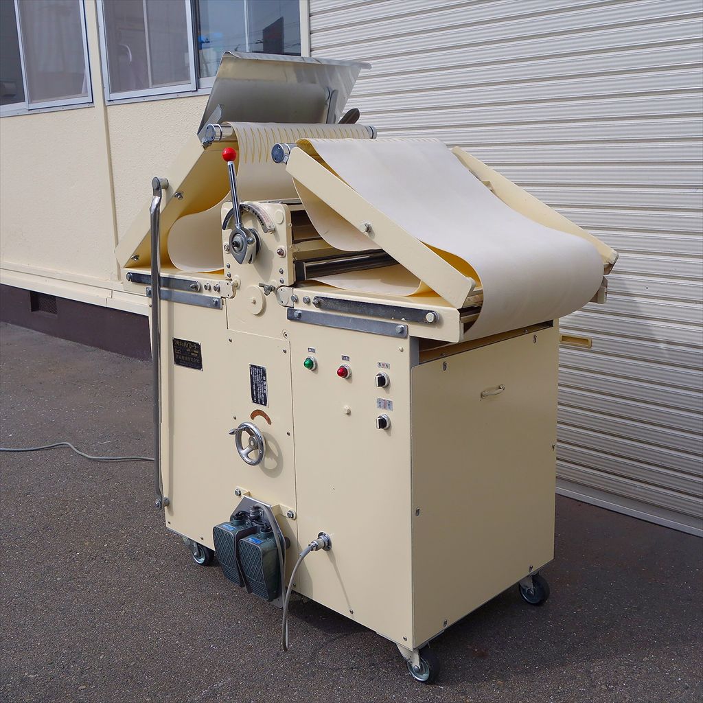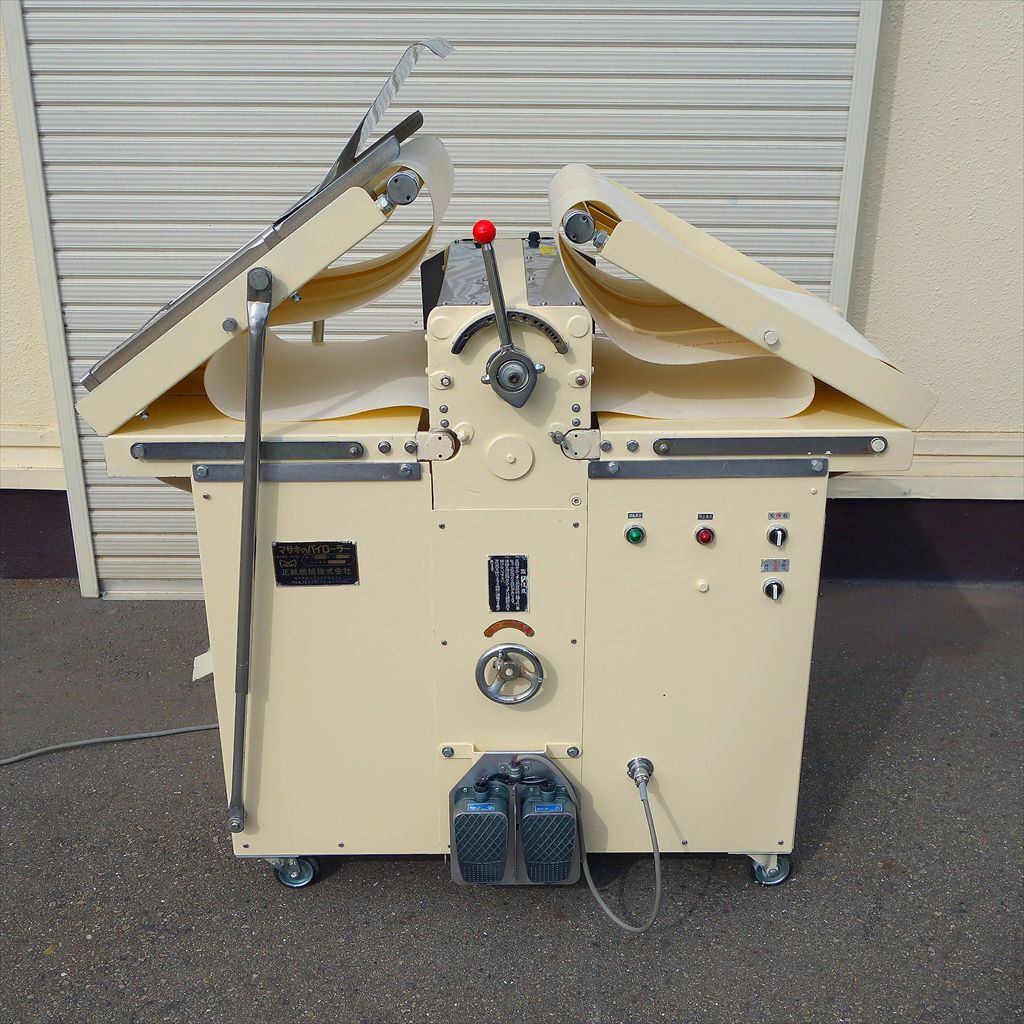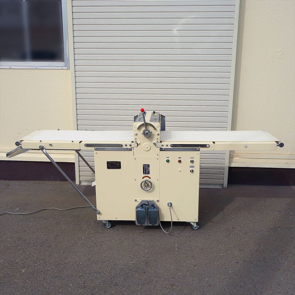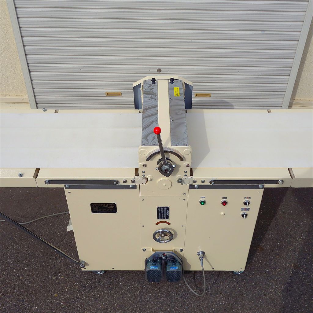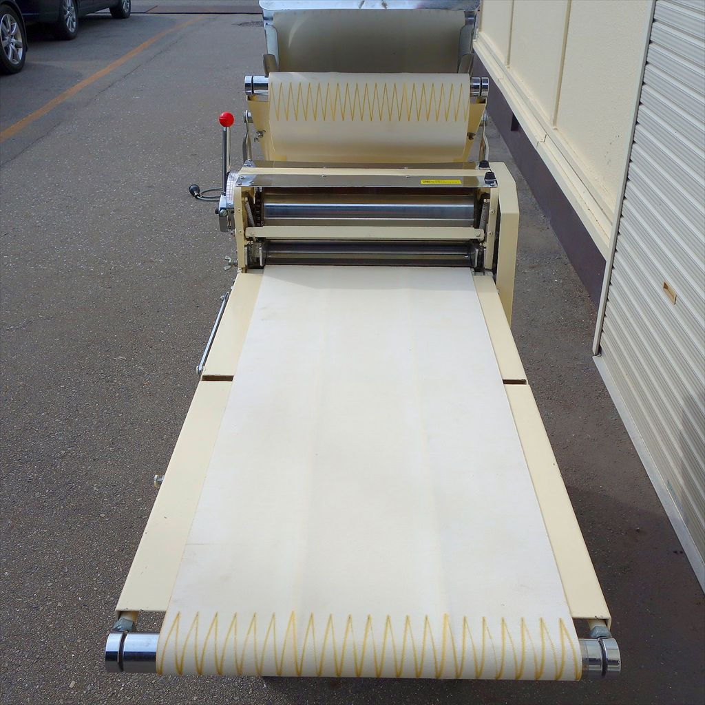 ベルトまでの高さ:H800(mm) ベルト折りたたみ時:W1200(mm) ベルト幅:425(mm) ベルト長さ(片面):1040(mm) ベルト周長:2160(mm) 生地の生産には必須、マサキのパイローラーです。 フットペダルでラクラク操作ができ、更に両手が使えるので作業効率の大幅向上につながる装置です! ◎分解清掃済み ◎動作確認済み(エイジング3/H以上) ◎フットペダル付き ◎搬送ベルト取り外し後 除菌洗浄済み ◎装置表面再塗装済み ◎装置裏面サビ止塗装済み 当社のメンテナンス商品は食品が接触する 可能性の有る駆動部分に 食品機械専用グリースを使用しております。 また、原則として当社の商品(主に機械類)には 除湿剤を内包保管し発送いたしております。 前使用者:製菓工場 (2014年12月まで使用されていました。) <見学・下見可能です> 整備清掃渡し【即納・即稼働可】 |