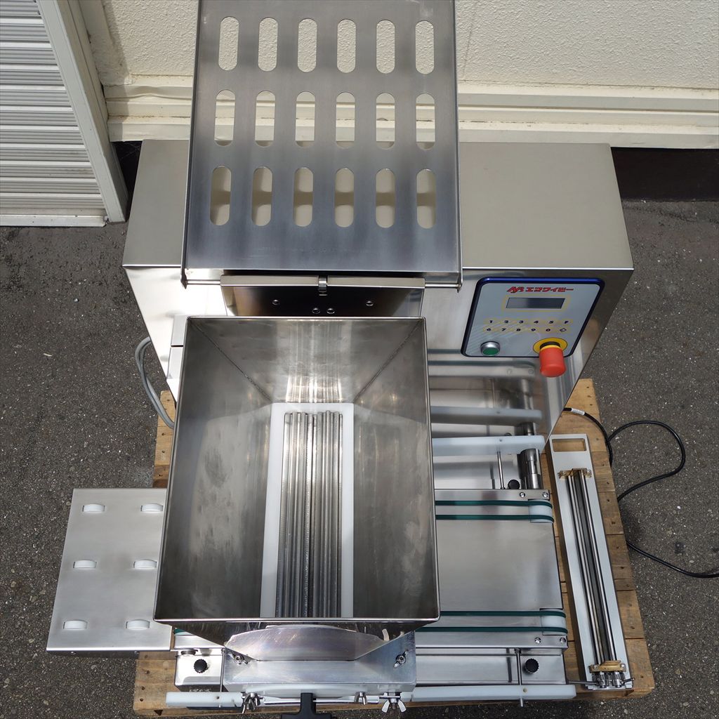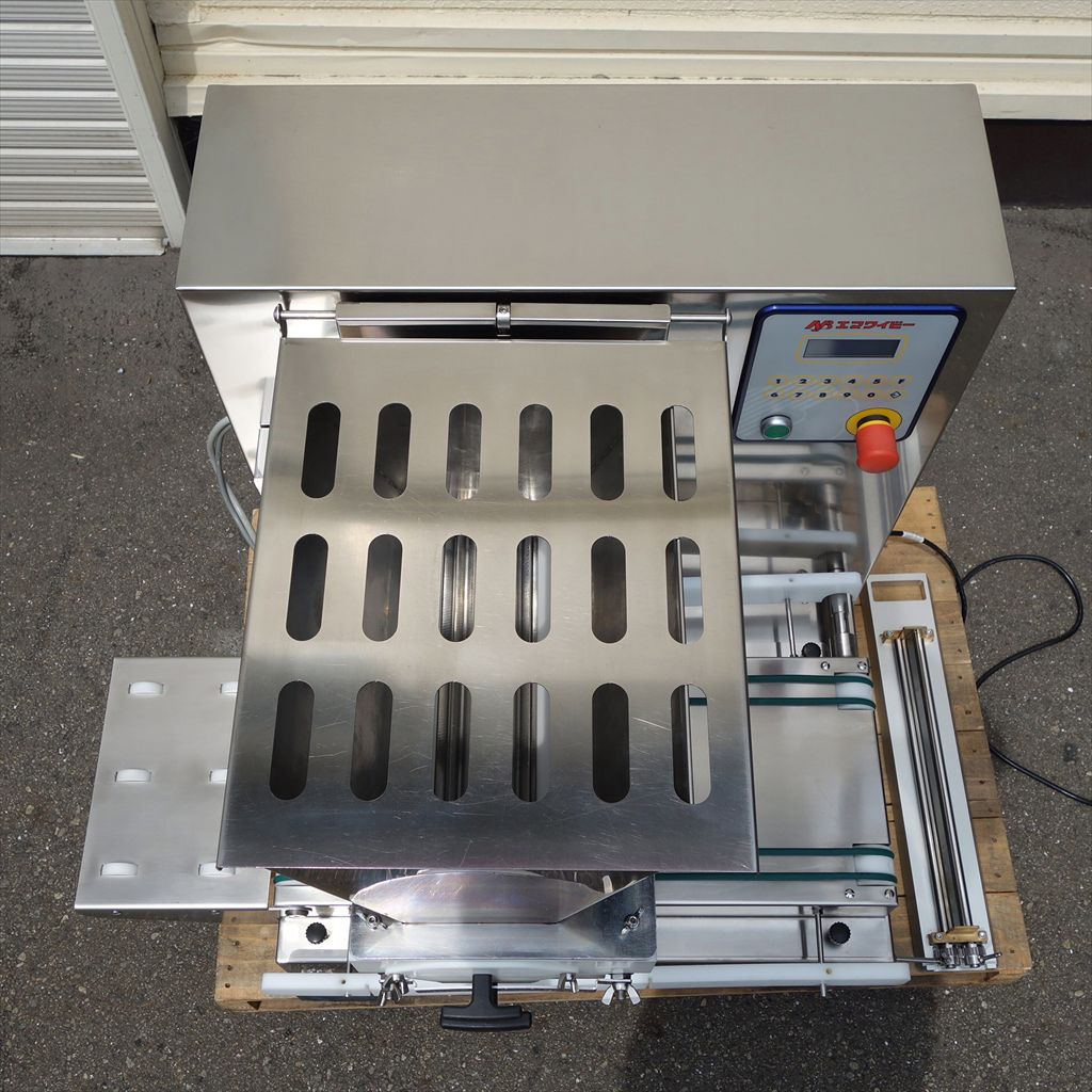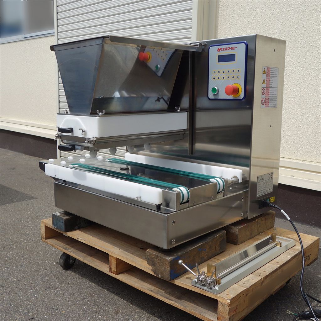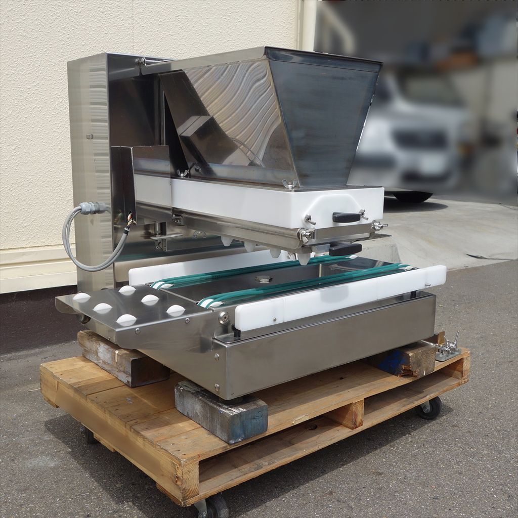 年式:2008年製 吐出能力:20ストローク/min 750×600(mm)の台に乗る超コンパクト設計なので、 卓上デポジッターとしてお使いいただけます。 ホッパー・ノズルの分解・洗浄も簡単に出来ます。 ノズル2種類付属で、ワンタッチで交換出来ます。 多彩なノズルの種類により、シュー・マカロン・ブッセといった 丸絞り・エクレア等の長絞り・フィナンシェ・マドレーヌなどの型への流し込みをこなし、 専用のシャッターノズルを取り付けることで シート生地を絞ることができる多機能デポジッターです。 カンタン操作で作業効率は大幅アップ、 人員コストは大幅削減、言うことなしの装置です! ◎整備清掃済み ◎動作確認済み(エイジング1/H以上) ◎最大対応ホテルパンサイズ:幅380(mm) ※背面機械部の鍵が欠品しておりますので その点にご注意下さい。 開閉にはペンチ等をご使用下さい。 当社のメンテナンス商品は食品が接触する 可能性の有る駆動部分に 食品機械専用グリースを使用しております。 また、原則として当社の商品(主に機械類)には 除湿剤を内包保管し発送いたしております。 前使用者:製菓工場 (2015年4月まで使用されていました。) <見学・下見可能です> 整備清掃渡し【即納・即稼働可】 |