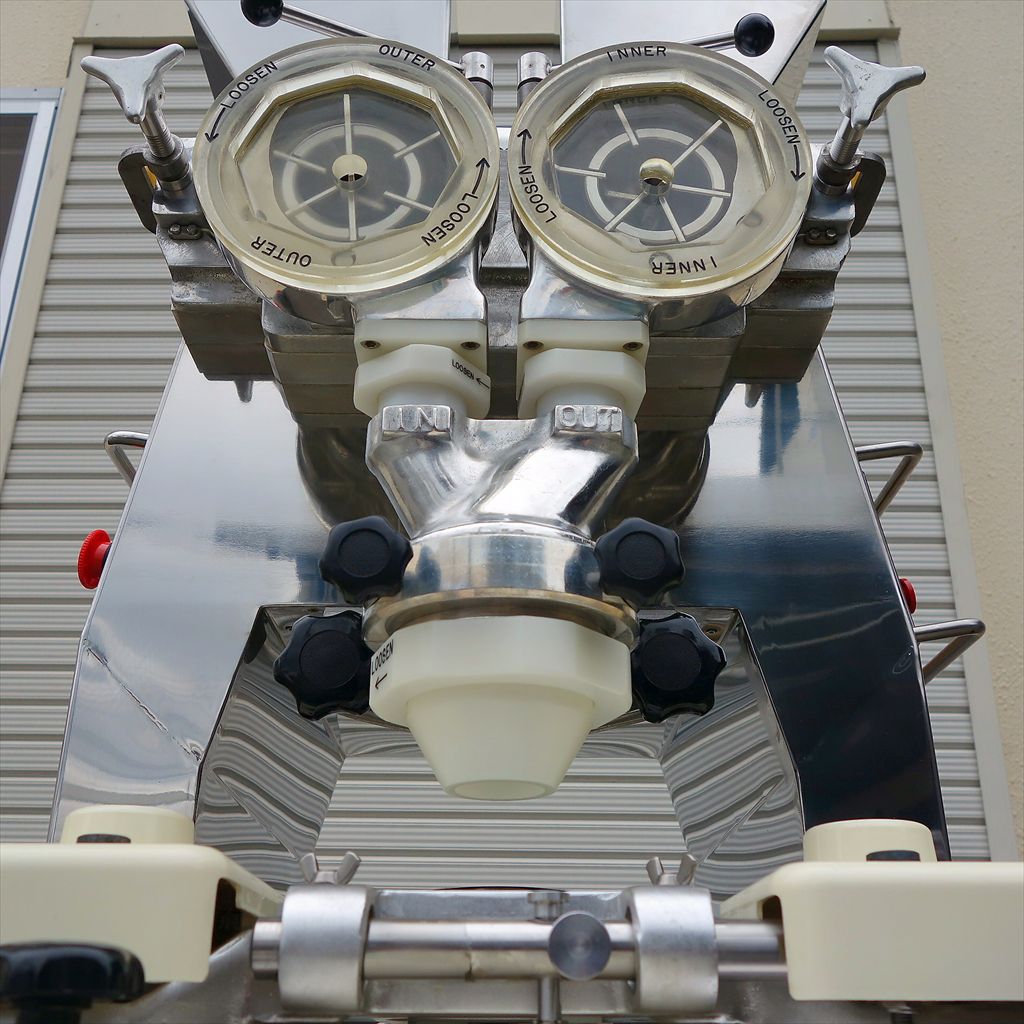 年式:1993年製 定価:5,184,000円 元祖「火星人」の呼び声高い「CN111型」です。 1993年製とは思えない程綺麗になりました。 元々1日に1時間~2時間程度しか稼働しておられなかった様ですので、 入荷時からコンディションは良好でした。 通常でも高い耐久性を持つレオン製品ですので 程度が良好な本機は十分現役で通用します! 一口饅頭なら、40個/分生産可能ですので、 1日8時間稼働で19,200個生産可能です! 手粉供給機も付いているので、粘度の高い物も製造できます! 商品に合わせて選べる囲みシャッターも3種類ございますので、 下記をご参照の上、用途によってお使い分け下さい。 付属シャッター 一覧 1・・・シャッター(5-45) 用途:焼物・蒸し物・弾力性がない物 2・・・シャッター(10-45) 用途:朝生・薯蕷饅頭・少し弾力性がある物 3・・・シャッター(20-30) 用途:求肥・弾力性が強い物 ◎分解清掃済み ◎溶剤磨き込み済み ◎動作確認済み(エイジング2/H以上) ◎使用頻度極少・程度良好 ◎手粉供給機付き ◎緊急停止セレクタースイッチ×2 新規交換済み ◎キャスター×4 新規交換済み ※使用には問題ございませんが、コントロールパネルに ひび割れがございますのでその点にご注意下さい。 当社のメンテナンス商品は食品が接触する 可能性の有る駆動部分に 食品機械専用グリースを使用しております。 また、原則として当社の商品(主に機械類)には 除湿剤を内包保管し発送いたしております。 前使用者:和菓子店 (新品購入後、あまり使用されないまま保管されていました。) <見学・下見可能です> 整備清掃渡し【即納・即稼働可】 |