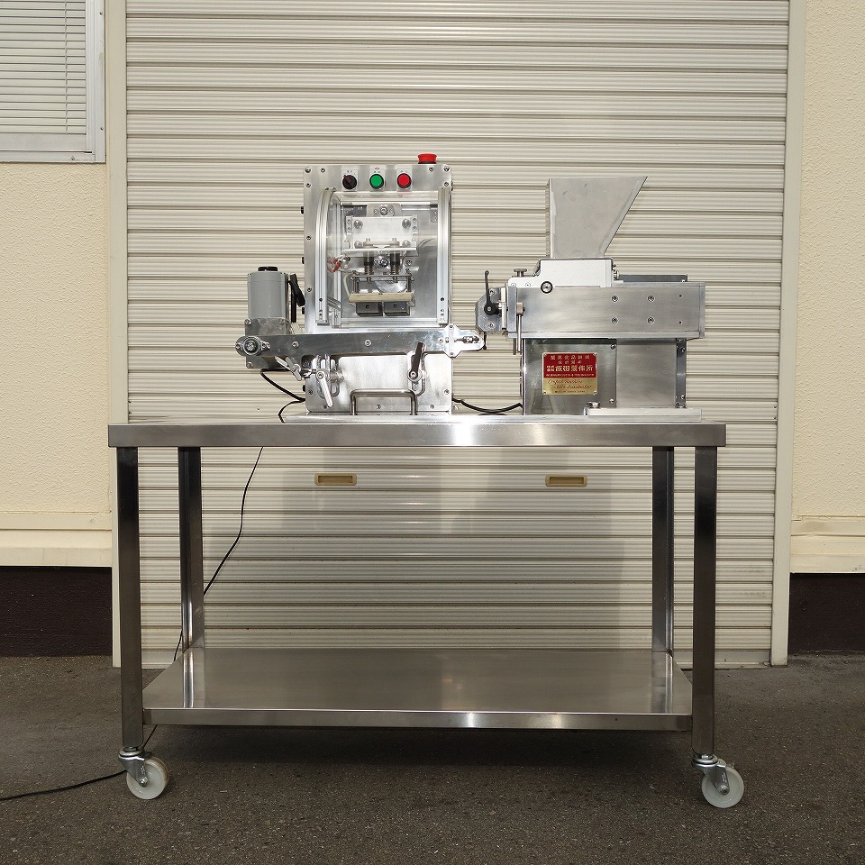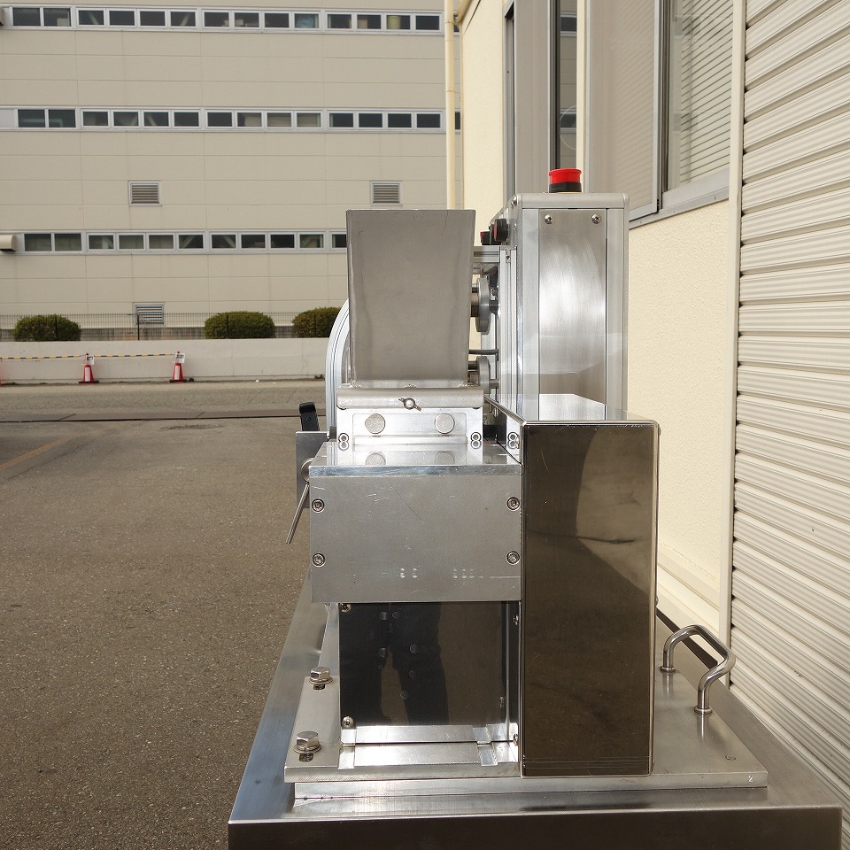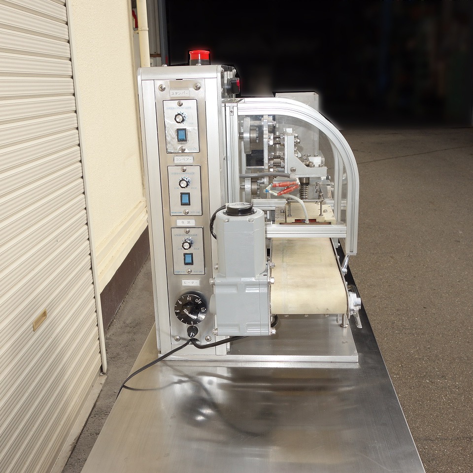 年式:2010年前後製 コンベア長さ:435(mm) コンベア幅:120(mm) 吐出生地サイズ:幅95(mm) 高さ:4.5(mm) 型抜きサイズ:70(mm)×42(mm) 小さいながらも高性能、理想的な型抜き機です! コンパクト故に設置場所を選ばず、移動もラクラク! 「スタンパー」「ベルト」「生地」のスピードコントロールと 「ヒーター」の調節が可能です。 ◎分解清掃済み ◎可動部各所メンテナンス済み ◎動作確認済み(エイジング2/H以上) ※搬送ベルトは消耗部品の為、保証対象外と させて頂きますのでその点にご注意ください。 当社のメンテナンス商品は食品が接触する 可能性の有る駆動部分に 食品機械専用グリースを使用しております。 また、原則として当社の商品(主に機械類)には 除湿剤を内包保管し発送いたしております。 <見学・下見可能です> 整備清掃渡し【即納・即稼働可】 |