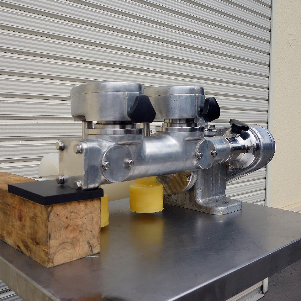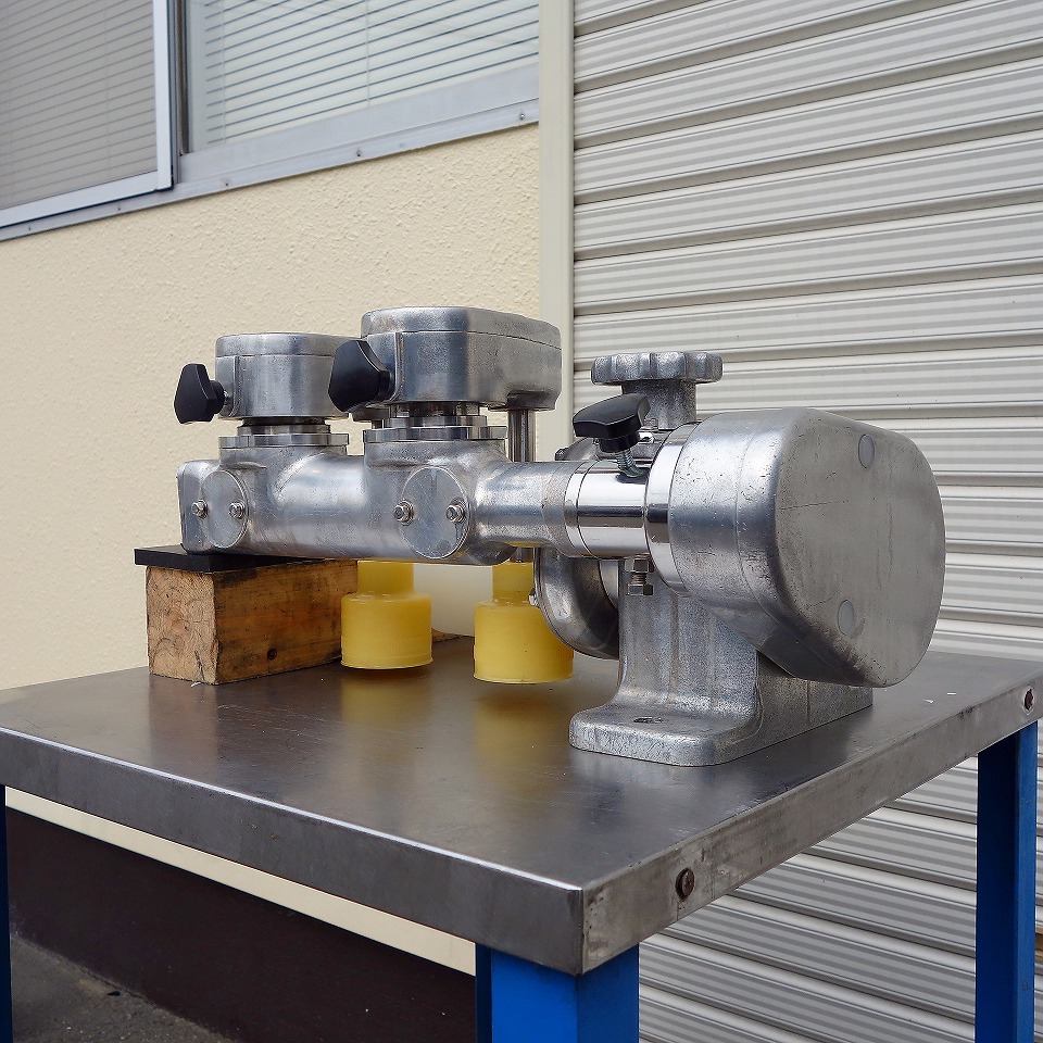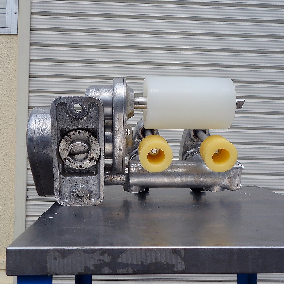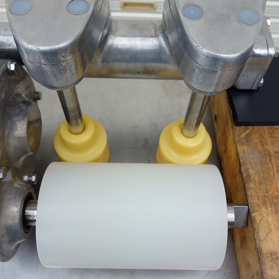 横ローラー(白):φ90(mm) 縦ローラー(橙):φ50(mm)×2連 包餡機から排出された製品の幅と高さを 美しく二次成型できます。 手を触れる事無く作業を行えるためストレスフリーです。 純正コンベアモーターとなら即稼働可能です。 少し細工が必要となりますが、純正コンベアでなくても モーターとスピコン連動で稼働可能です。 現行モデルのタテヨコローラー(ローラーベース)なので 非常にお買い得な商品となっております! ◎横ローラーベース幅 変更可能 ◎縦横アジャスト 手動 当社のメンテナンス商品は食品が接触する 可能性の有る駆動部分に 食品機械専用グリースを使用しております。 また、原則として当社の商品(主に機械類)には 除湿剤を内包保管し発送いたしております。 整備清掃渡し【即納・即稼働可】 |