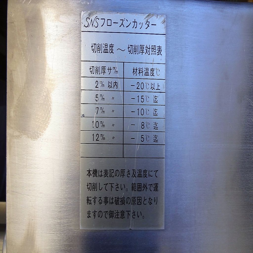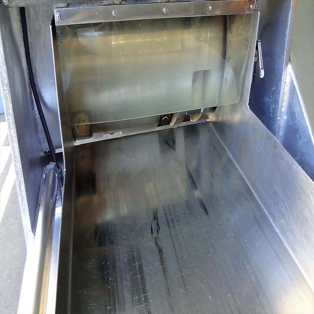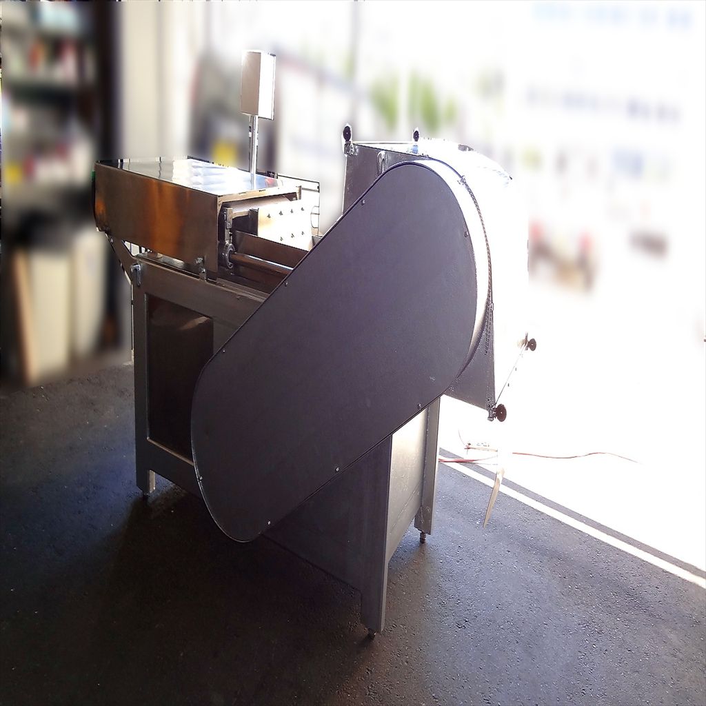 年式:1982年製 食材投入レーン幅:500(mm) 食材投入レーン高:260(mm) 切削材最大寸法:250×500×600(mm) 刃の寸法・枚数:巾54(mm) 10枚 排出口高さ:約550(mm) カッター回転数:約150rpm 用途:冷凍肉・脂身・魚・すりみ 果実・野菜・シートバター及び鶏ガラ等 スイッチひとつでカンタン操作! 用途多彩で時間と人件費を大幅削減! ◎薬剤清掃済み ◎動作確認済み(エイジング2/H以上) ◎SUS部 塗装済み 錆取り・研磨済み ◎側面鉄部 塗装済み 錆取り・研磨済み ◎ロールカッター 研磨済み ◎コンプレッサー新品交換済み(日立 LE-8T搭載) ※刃の切れ味につきましては、消耗品のため保証対象外となります。 当社のメンテナンス商品は食品が接触する 可能性の有る駆動部分に 食品機械専用グリースを使用しております。 また、原則として当社の商品(主に機械類)には 除湿剤を内包保管し発送いたしております。 前使用者:食品工場 (2013年6月まで使用されていました。) <見学・下見可能です> 整備清掃渡し【即納・即稼働可】 |