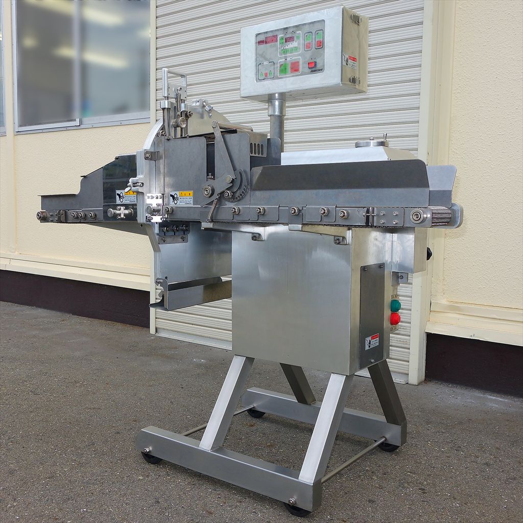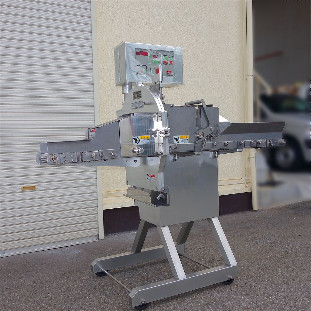 年式:2000年(前後)製 切断能力:150~800kg/時 切断寸法:0~50mm(1枚刃) 投入寸法:W130 H100(mm) 用途 野菜全般:ネギ、きゅうり、人参、キャベツ、ピーマン、レタス等 漬物全般:沢庵、つぼ漬け、奈良漬、野沢菜、かぶ、生姜、福神漬け等 その他:こんにゃく、薄あげ、玉子焼、かまぼこ、松茸、椎茸、その他各種食材・総菜 以前はしいたけの切断に使用されておりましたが、 使用頻度が低く、装置の状態は良好でまだまだ現役です! 刃の回転速度も4段階の設定が可能で緊急停止装置もバッチリです!(試運転動画2:55より) フードスライサーNo.1メーカーであり、 エムラ・アイホー・日調を加えたスライサー四天王の筆頭です! カットされた原料が整列した状態で排出されますが(試運転動画4:41より) これは吉泉社の特許であり、他社にはマネできない優秀な機能です! 6 カット後すぐに箱詰めする場合に大変便利です! ◎整備清掃済み ◎分解清掃済み ◎動作確認済み(エイジング2/H以上) ◎筐体素材SUS ◎程度良好 当社のメンテナンス商品は食品が接触する 可能性の有る駆動部分に 食品機械専用グリースを使用しております。 また、原則として当社の商品(主に機械類)には 除湿剤を内包保管し発送いたしております。 前使用者:小規模食品工場 (2014年6月まで使用されていました。) <見学・下見可能です> 整備清掃渡し【即納・即稼働可】 |