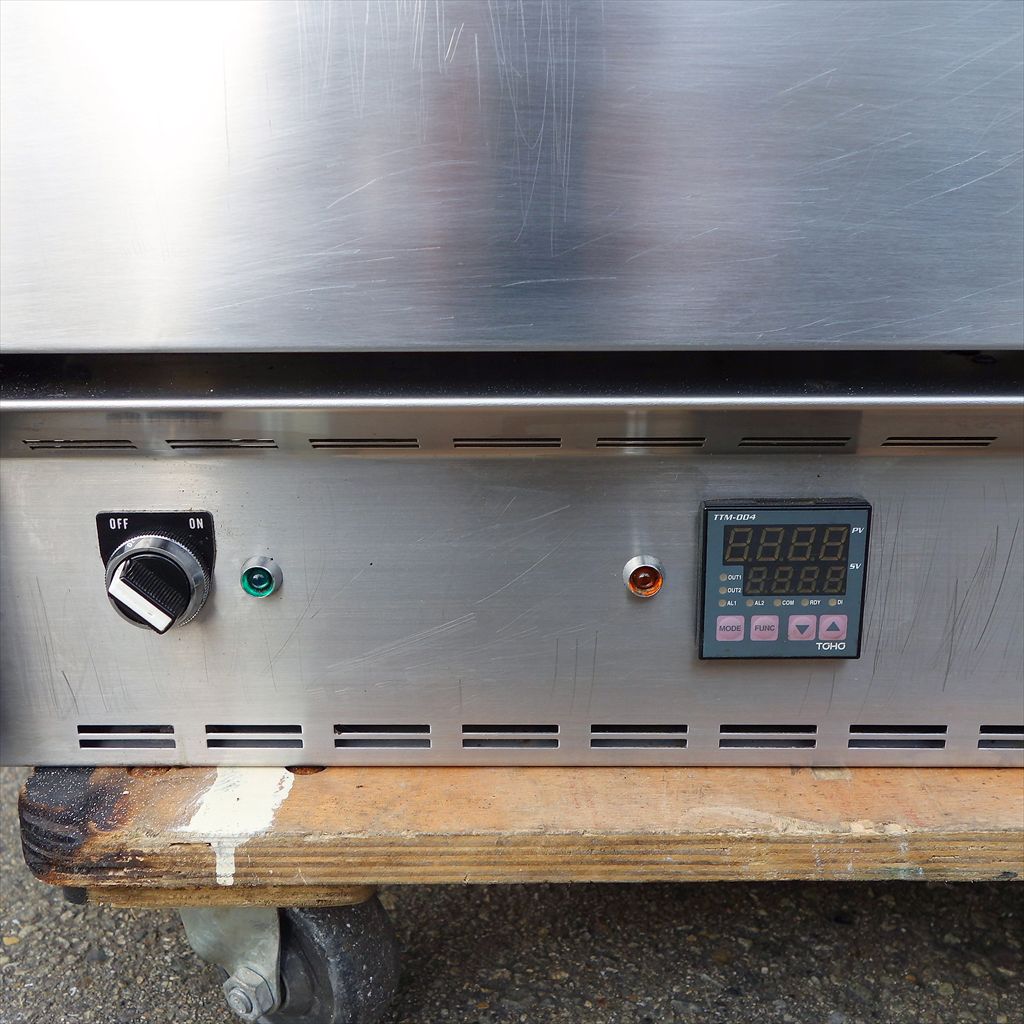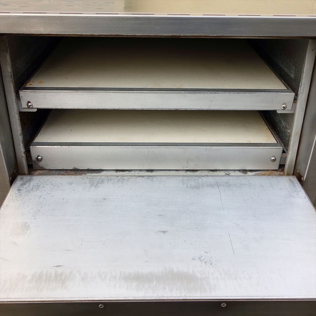 年式:2005年前後製 棚板:450×445(mm) 棚高さ:70(mm) 業務用厨房ピザオーブンの定番! 卓上サイズですが、本格石床窯なので短時間調理! 「外はカリッと、中はもっちり」Pizzaが出来上がります! 年式は不明ですが、おそらく2005年前後と思われます。 年式不明とはいえ、石床に割れもなく 最高のクオリティに仕上がりました! 温度上昇テスト・焼き具合ともにバッチリです! (試運転動画1:07より) ◎完全分解清掃済み ◎配線巻直し済み ◎筐体及び庫内 焦げ汚れ研磨済み ◎仕上げ 簡易ヘアライン研磨加工 ◎動作確認済み(エイジング1/H以上) ◎温度上昇 400℃(MAX)まで確認 ◎8秒ごとに1℃上昇 当社のメンテナンス商品は食品が接触する 可能性の有る駆動部分に 食品機械専用グリースを使用しております。 また、原則として当社の商品(主に機械類)には 除湿剤を内包保管し発送いたしております。 前使用者:小規模洋菓子店 (2014年9月まで使用されていました。) <見学・下見可能です> 整備清掃渡し【即納・即稼働可】 |